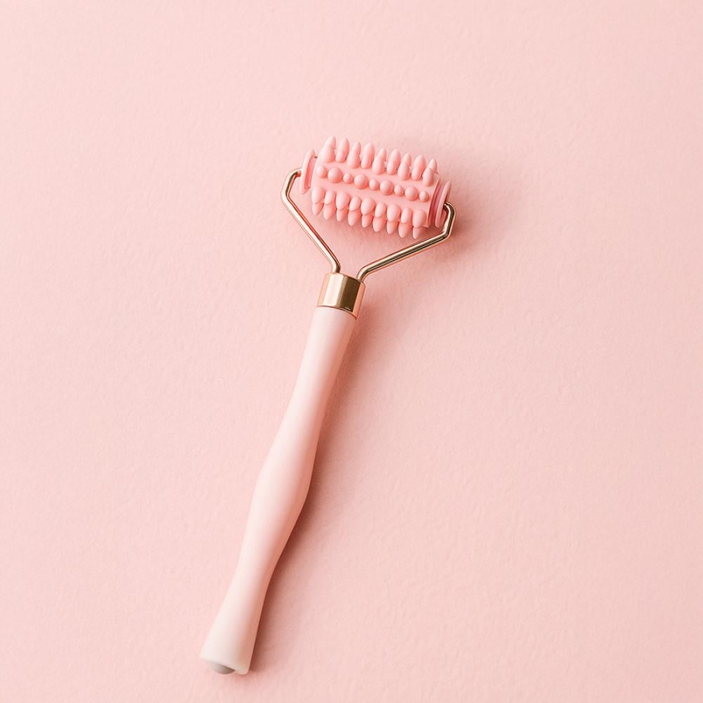 أداة تدليك مدورة 2 في 1 للوجه - وردي