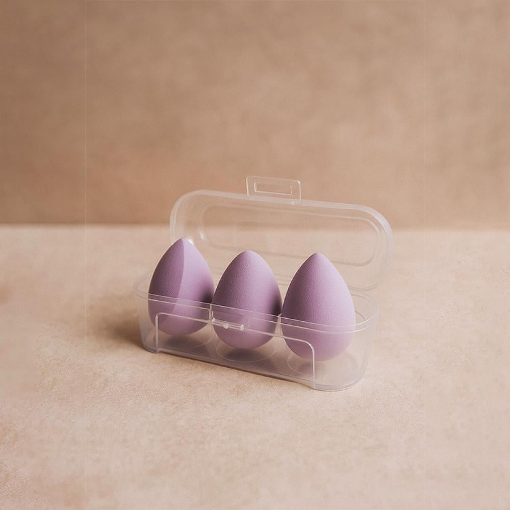 اسفنج مكياج مع صندوق تخزين 3 قطع - بنفسجي