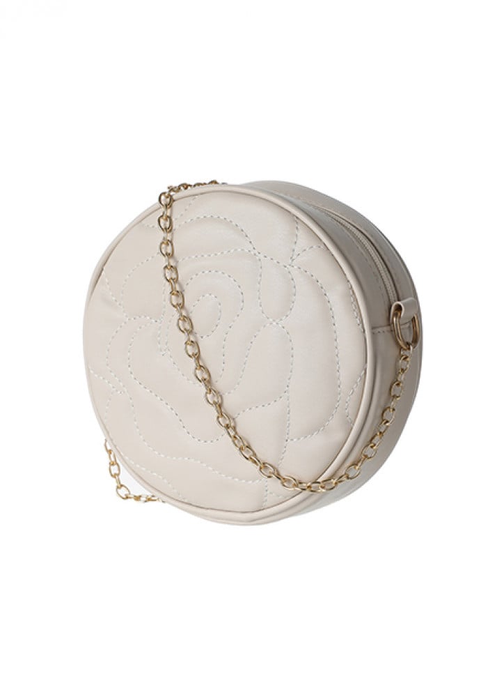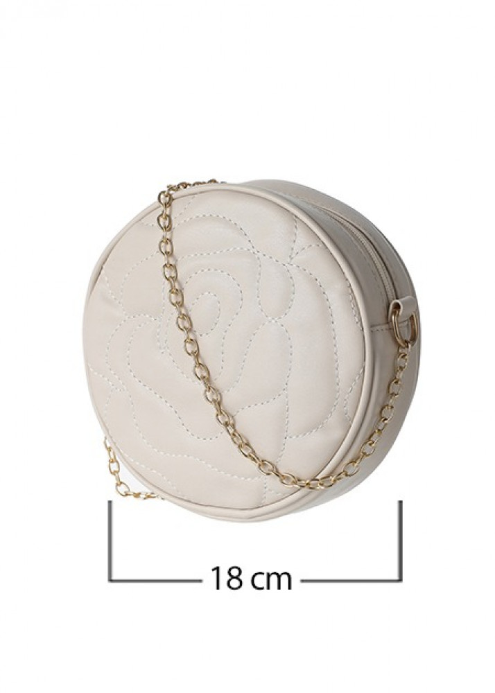 حقيبة كتف دائرية مبطنة بنمط وردة مع سلسلة - ابيض - مقاس 18*18