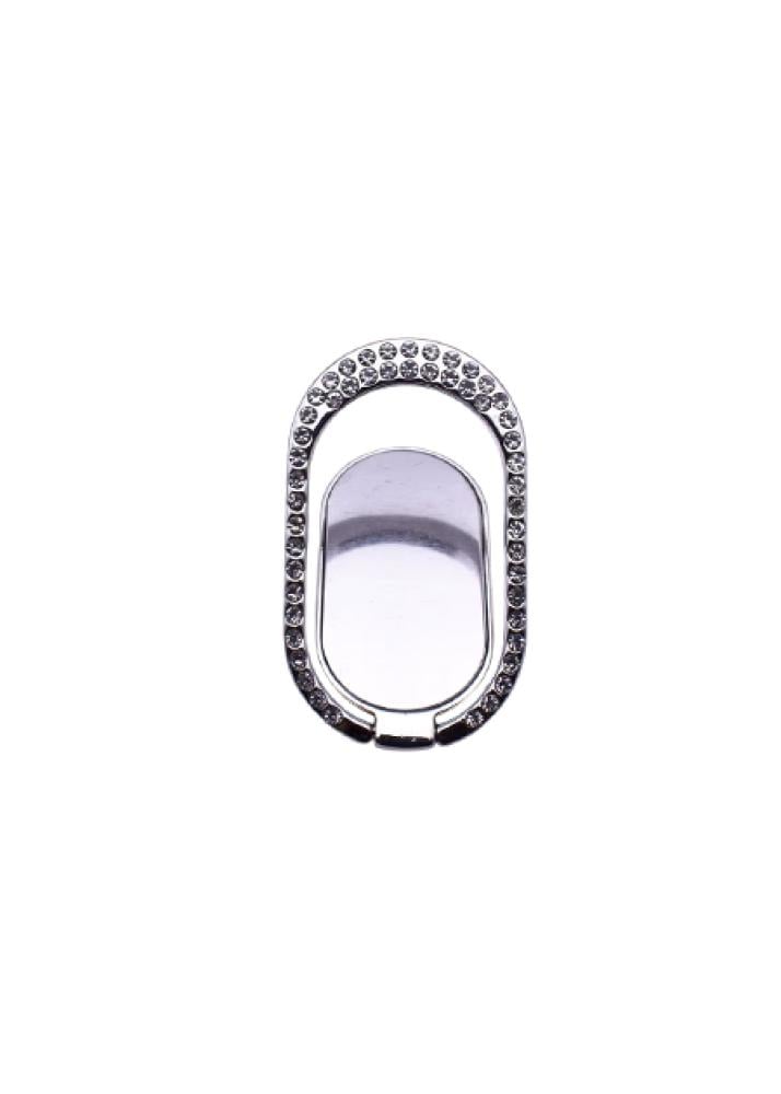 خاتم جوال بحلقة معدنية من سلسلة الألماس - بيضاوي فضي