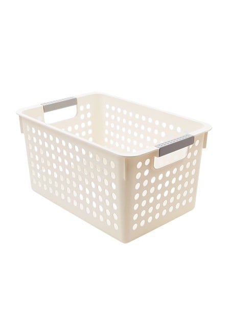 صندوق تخزين طويل بمقبض حجم كبير - ابيض