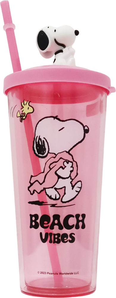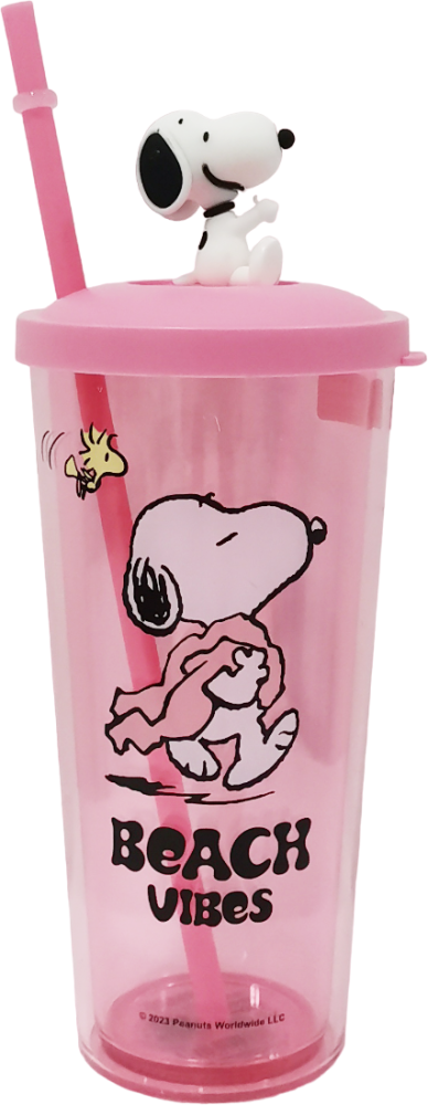 كوب بلاستيك مع مصاص من مجموعة سنوبي سمر ترافيل 550مل - وردي