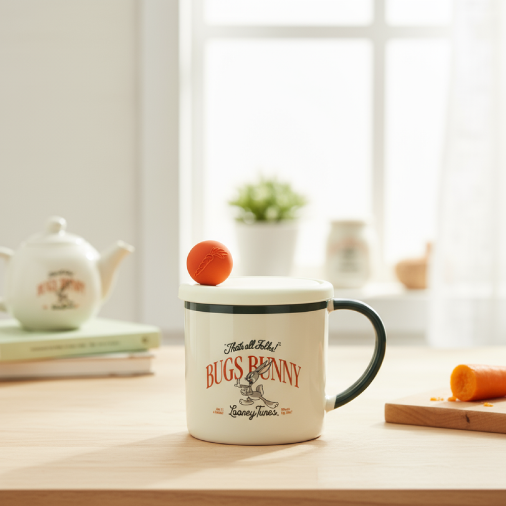 كوب سيراميك بغطاء بتصميم ريترو من شخصية باغز باني (سعة 470 مل)