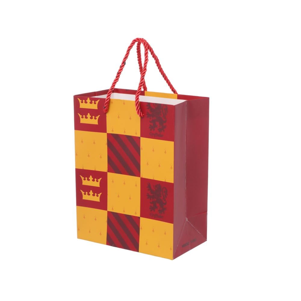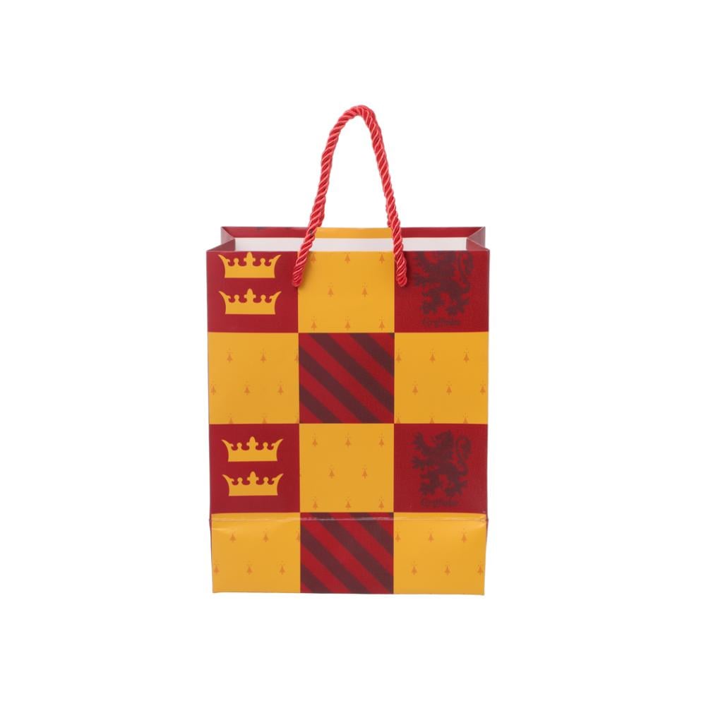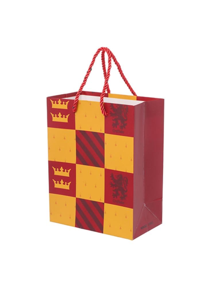 كيس هدايا أنيق بتصميم بيت جريفندور الشهير من سلسلة هاري بوتر. مصنوع من مواد متينة عالية الجودة ومزين بألوان جريفندور المميزة: الأحمر والذهبي، مع شعار الأسد الشجاع. حجم متوسط مثالي لتغليف الهدايا الصغيرة والمتوسطة بطريقة مميزة تناسب محبي عالم السحر.