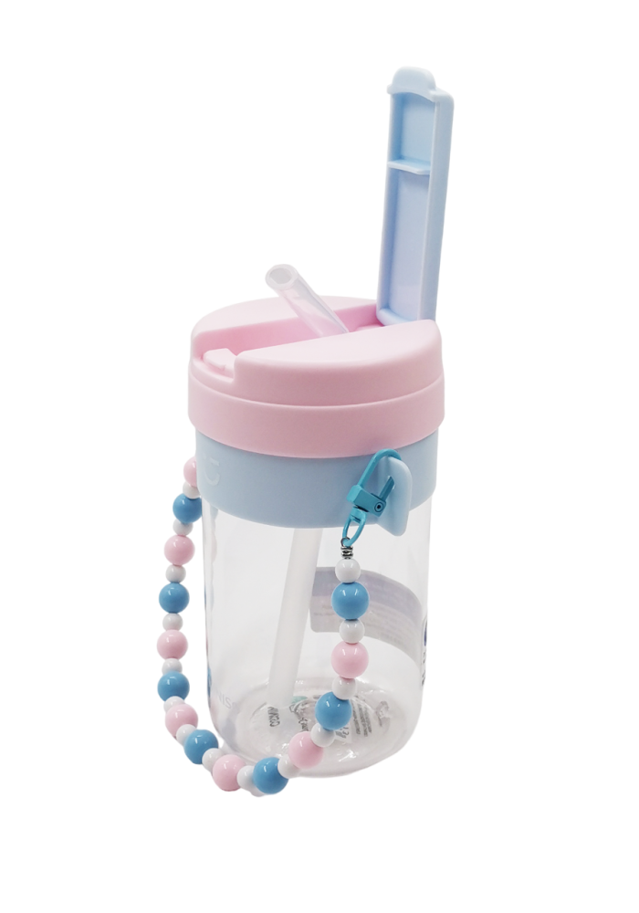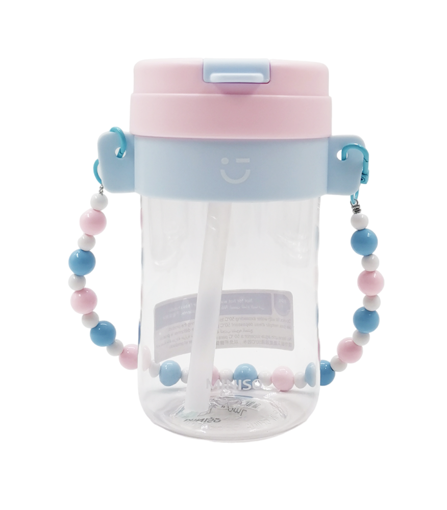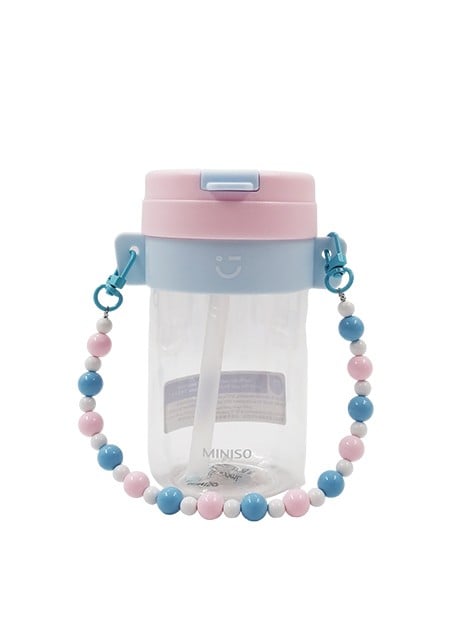 مطارة بلاستيكية بغطاء قابل للطي مع حزام مزين بالخرز بسعة 500 مل - وردي